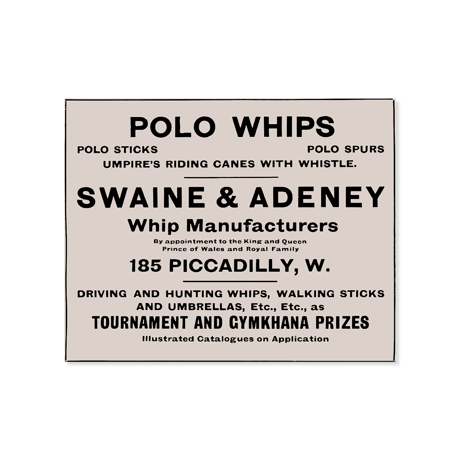 Delving into the world of polo, Swaine & Adeney curated a comprehensive catalogue in 1910-11, showcasing not only polo whips and sticks but also an array of essential equipment. From balls and gloves to goal posts and caps, their offerings catered to every aspect of the sport. Although some items were sourced from specialised suppliers, Swaine & Adeney took pride in crafting the whips and sticks in-house.